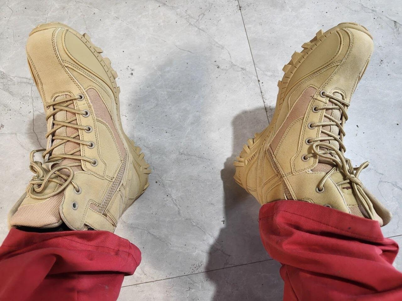 The upper part of the boots is crafted from Tactical Nylon and suede leather, providing high scratch and abrasion resistance. The gusseted tongue prevents pebbles, sand, dirt, and other debris from entering these boots. With excellent workmanship, the boots are of very high quality and durability.